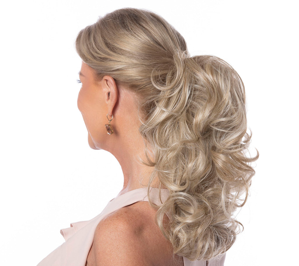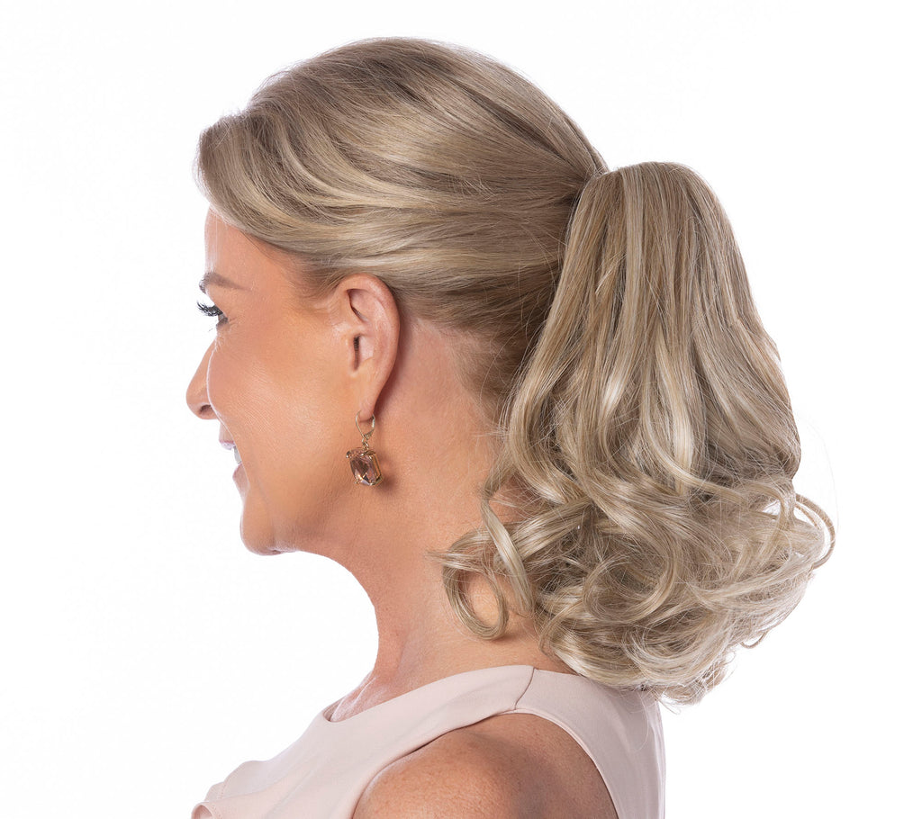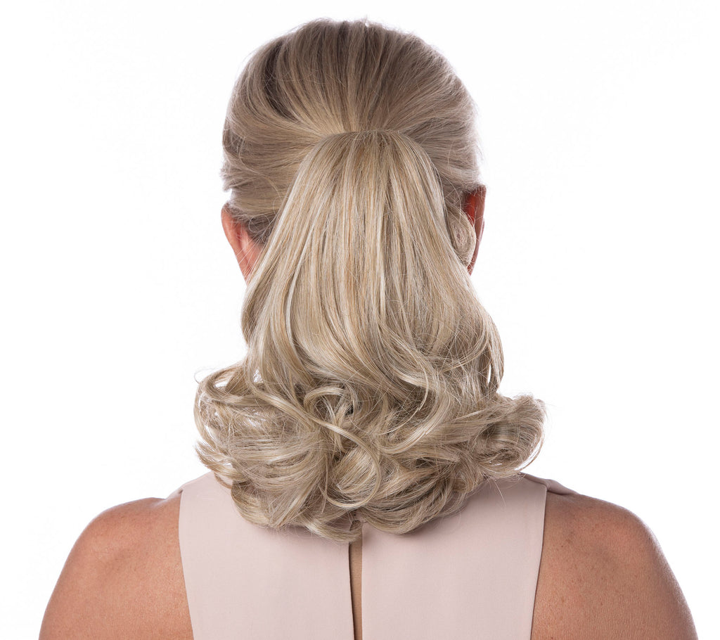 Clip-On (4" Claw Clip) Full Ponytail that Instantly adds Volume, Length and Bounce... and Reversible for Extended Length and Limitless Styling Options. Wear it High or Low for a Completely Different Hairstyle. Looks and Feels like Healthy, Natural Hair.