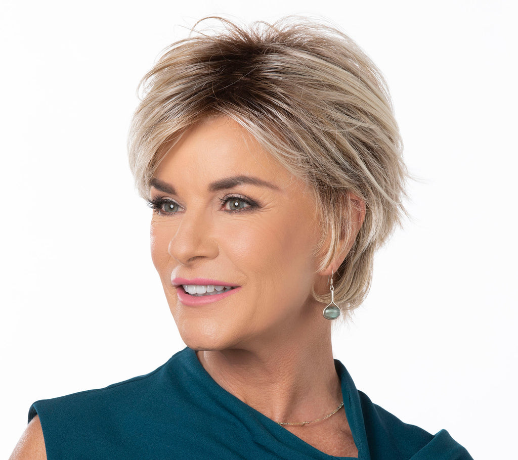 The Toni Brattin Whimsical Wig features All-Over Textured Layering and Feathered Lengths with a Fashionable Soft Bang and Added Crown Volume. With its Perfectly Stylish Appearance, the Whimsical can be worn forward to Frame the Face or Brushed Back Behind the Ears for a more Sophisticated Look. Undone or Buttoned-Up - the Whimsical is an Anytime Smart Style that can be Easily Changed... On a Whim. Available in Regular & Plus Sizes - the Specially designed Wig Cap can be Easily Adjusted for a Custom, Secure and Comfortable Fit using the Sizing Tabs in the Neckline of the Wig. Nylon Wig Cap Included. All Toni Brattin Wigs have the Look and Feel of Healthy, Natural Hair.