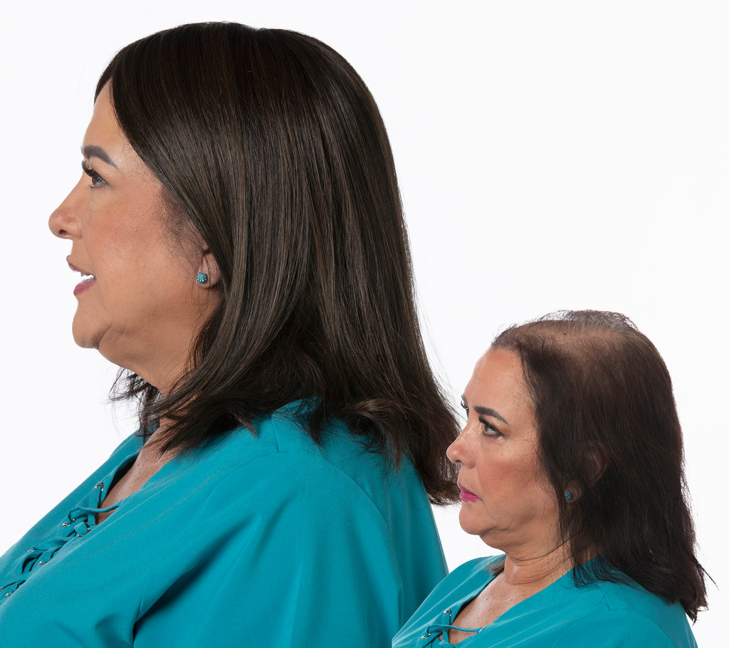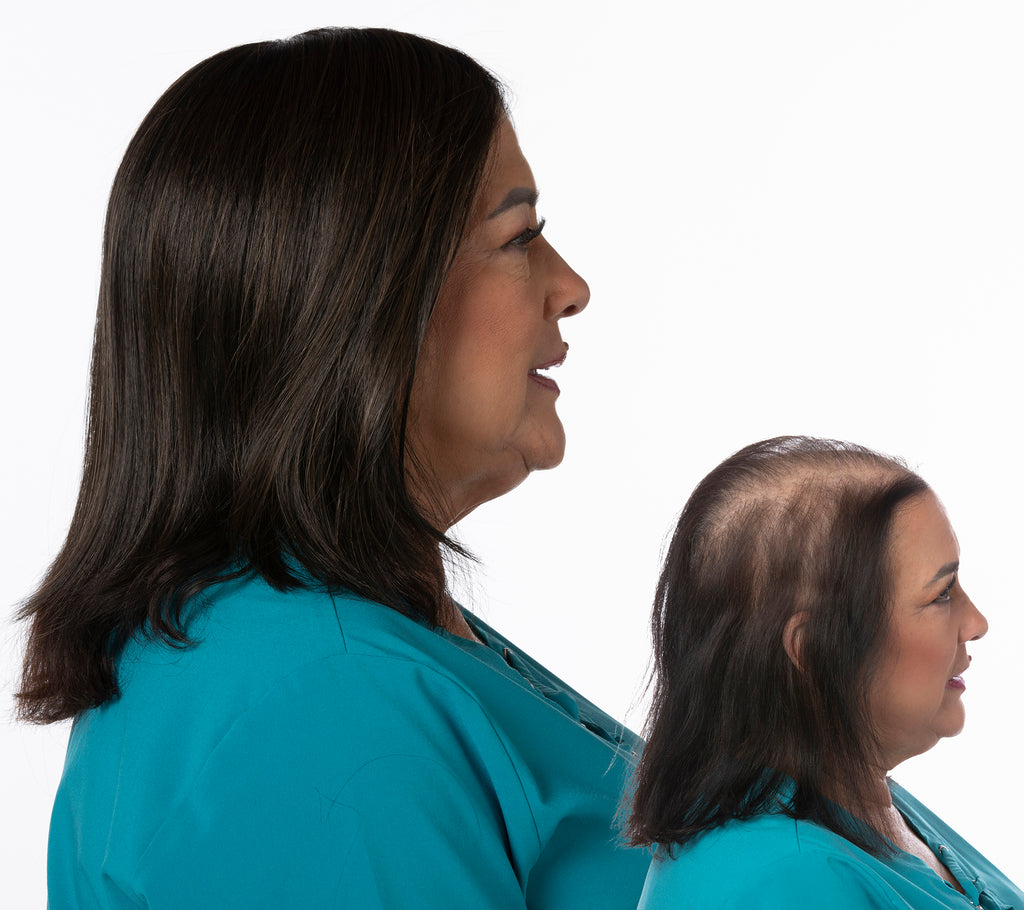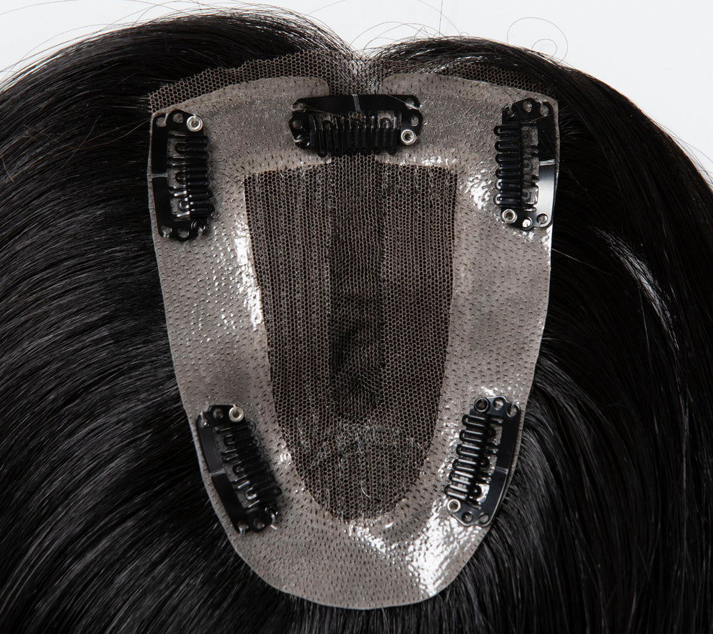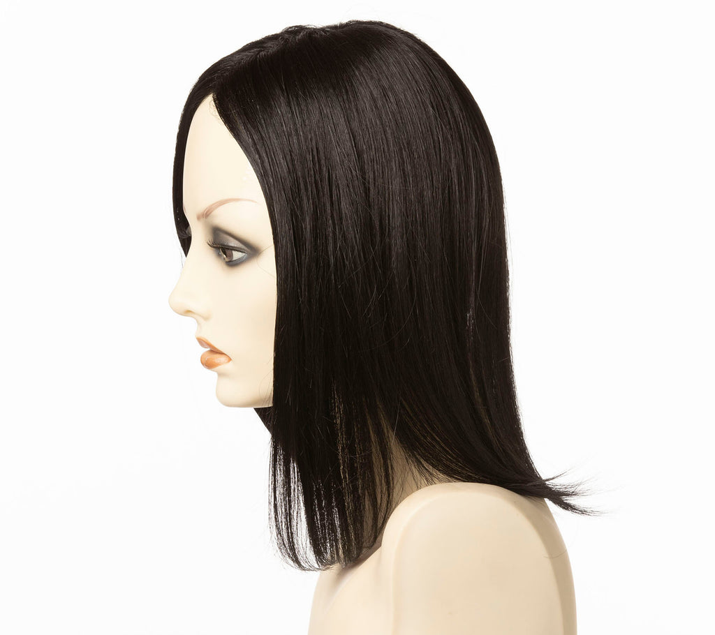 The Salon Topper features a 4” x 5” Base with Four Pressure Sensitive Snap Clips for Easy and Secure Attachment, and Measures 12 ½” in the Crown, and 12 ½” in the Sides and Back of Straight Kanekalon® Synthetic Fiber for Blend-ability and Easy Wear/Easy Care – Just Shampoo Wash and Towel/Air Dry. NEW Toni Brattin Heat-Friendly Fiber can be curled or straightened with thermal styling tools (up to 350° Fahrenheit / 180° Celsius) to achieve your desired hairstyle.