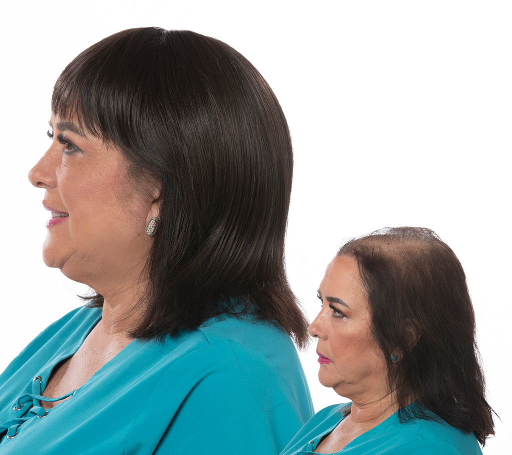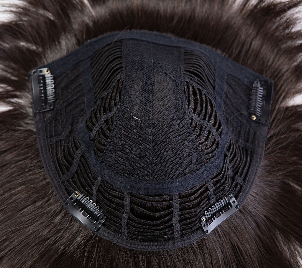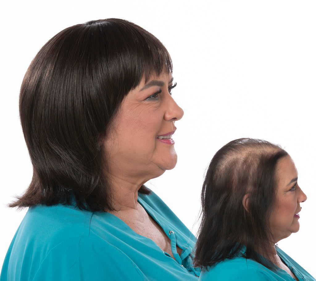 The Toni Brattin Total Topper Hair Piece is Uniquely Designed for Complete Coverage of the Entire Crown of the Head, and addresses the Most Difficult to Hide Hair Loss and Thinning Hair Issues. The Custom Designed Crown, and Added-Length Sides and Back provide Total Coverage for Even the Worst Thinning Areas. With a Slight Wispy Bang and Subtle Crown Part, the Total Topper attaches Effortlessly, Fits Comfortably and Securely, and is Virtually Undetectable - Providing the Ultimate in Confidence and Life-Like Wear. Secured with Pressure Sensitive Snap Clips, the Total Topper Blends with your Natural Hair for both Coverage and Style-ability. Looks and Feels like Natural, Healthy Hair. Ideal for a New Style, or a Quick and Easy Answer to a Bad Hair Day.