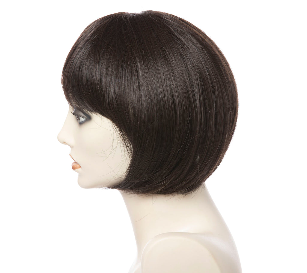 Approximately 5 inch Wispy Bangs and 8 ½ Inch Side Tapers of Straight Kanekalon® Synthetic Heat-Friendly Fiber for Easy Wear/Easy Care – Just Shampoo Wash and Towel/Air Dry. NEW Toni Brattin Heat-Friendly Fiber can be curled or straightened with thermal styling tools (up to 350° Fahrenheit / 180° Celsius) to achieve your desired hairstyle.