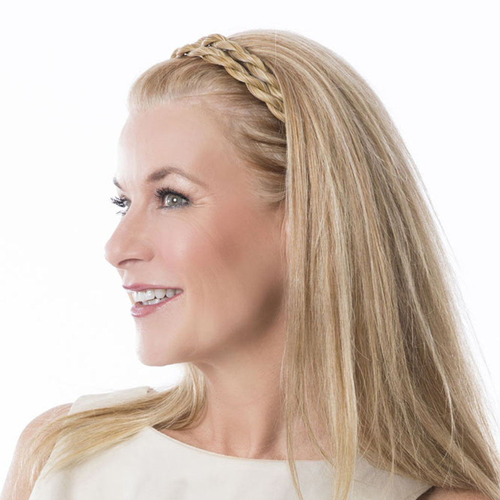 The Rope Braid Headband features 2 Large Braided Strands of Contrasting Color (one shade lighter and one shade darker for typical color choice) Hair Fiber and is the Perfect Accessory for any Hair Length. Adjustable Band for Unlimited Styling Options. Great with any Hair Texture or Length - and the Perfect Accessory when Worn with other Hair Fabulous Hairpieces. Looks and feels like Natural, Healthy Hair.