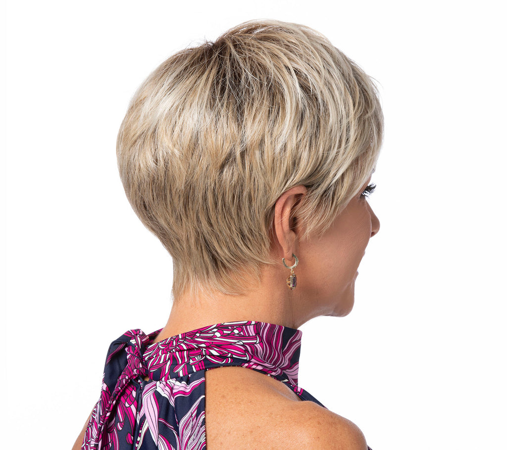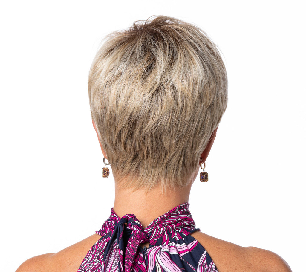 The Toni Brattin Snazzy Wig features Light and Wispy Texturing for Limitless Styling Options from Soft & Smooth to Airy & Spikey.  Short, Spirited and Sophisticated, the Snazzy has Face-Framing Bangs that Fall Gently across the Forehead, and a Precision Cut Neck-Hugging Tapered Neckline.  The Overall Textured Crop is both Natural Looking and Reflective of Today's Snazzy Style Trends.  Available in Regular & Plus Sizes - the Specially designed Wig Cap can be Easily Adjusted for a Custom, Secure and Comfortable Fit using the Sizing Tabs in the Neckline of the Wig.  Nylon Wig Cap Included.  All Toni Brattin Wigs have the Look and Feel of Healthy, Natural Hair.