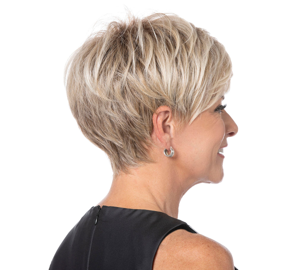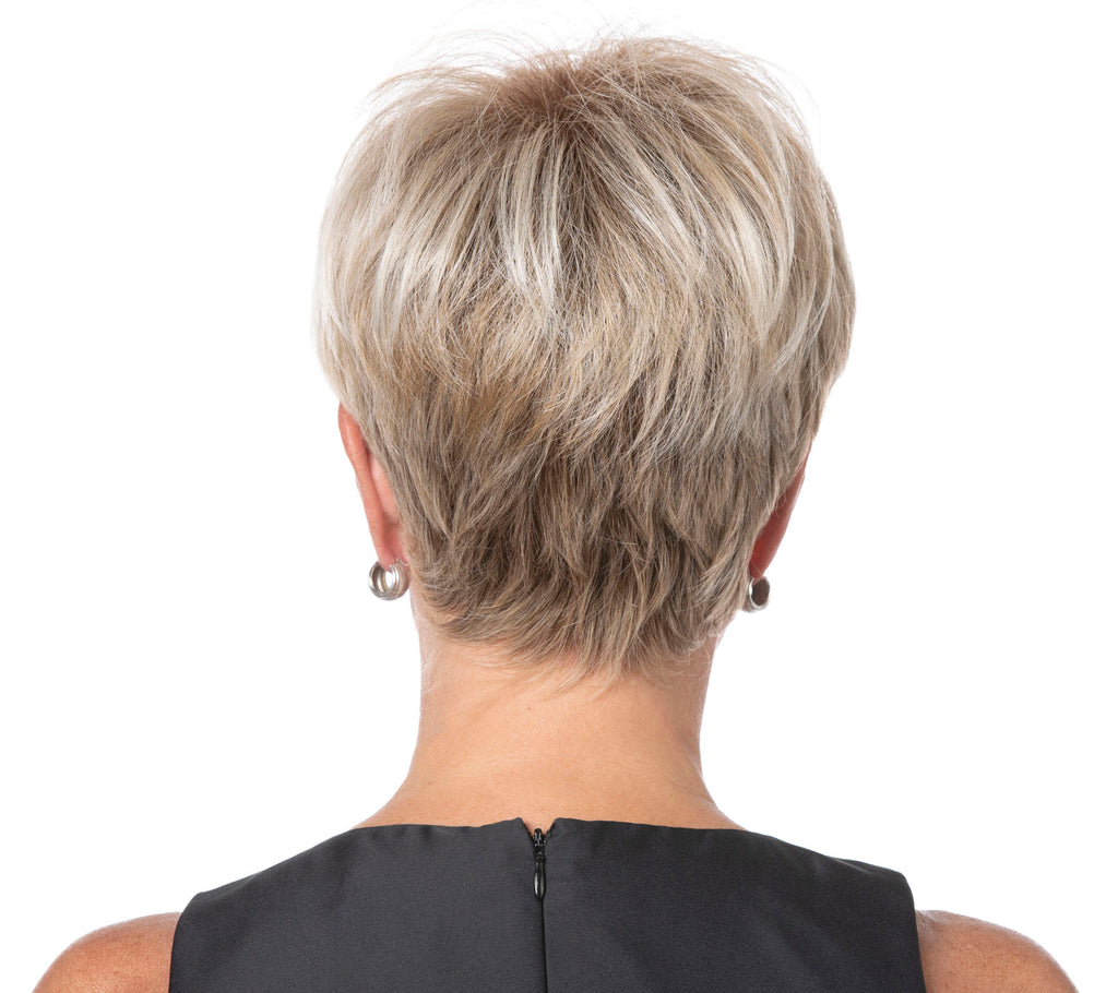 The Toni Brattin Popular Pixie Wig features a Precision All-Over Layered Boy Cut with a Tapered Neckline and Close Fitting Sides. The Popular Pixie has Fullness in the Crown and Sweeping Bangs in Front - The Perfect Style for Today's Popular Short Hair Trend. Change Your Style to Fashionably Short without the Big Commitment of Cutting Your Hair. Available in Regular & Plus Sizes - the Specially designed Wig Cap can be Easily Adjusted for a Custom, Secure and Comfortable Fit using the Sizing Tabs in the Neckline of the Wig. Nylon Wig Cap Included. All Toni Brattin Wigs have the Look and Feel of Healthy, Natural Hair.